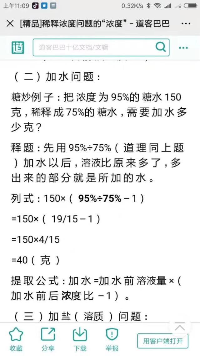 我在2010年百度文库中有一篇关于浓度问题的文章正好有这样一道题。