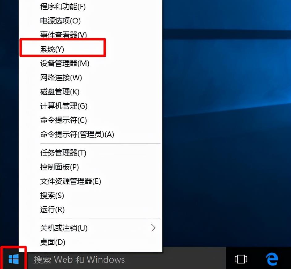 2、如果我们的Win10桌面上没有“此电脑”的图标,可以用鼠标右击左下角的“开始”菜单,在页面中选择”系统“选项打开。