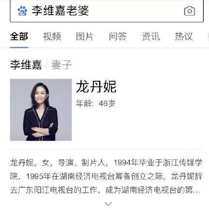 词条显示,李维嘉的妻子是“龙丹妮”。