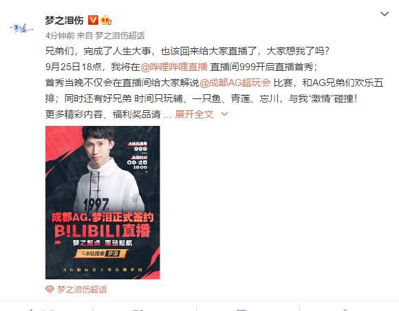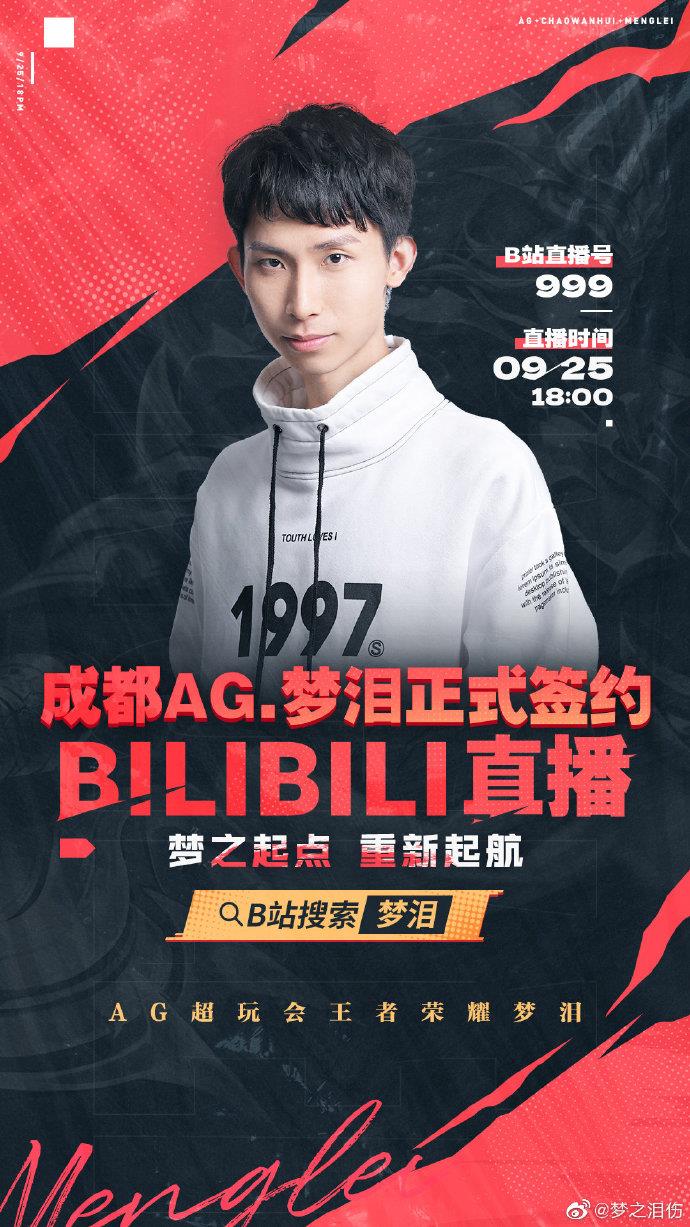 梦泪签约B站直播,9月25日开启直播首秀,网友表示期待