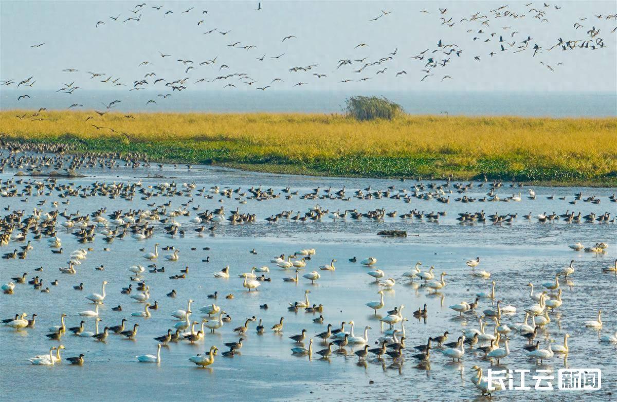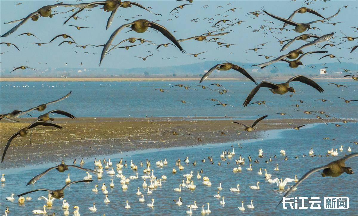 12月6日,在湖北龙感湖国家级自然保护区,数万只越冬候鸟或静卧湖面,或展翅高飞,或觅食嬉戏,勾勒出一幅幅自然和谐的生态美景。目前,保护区监测到候鸟数量达10多万只。