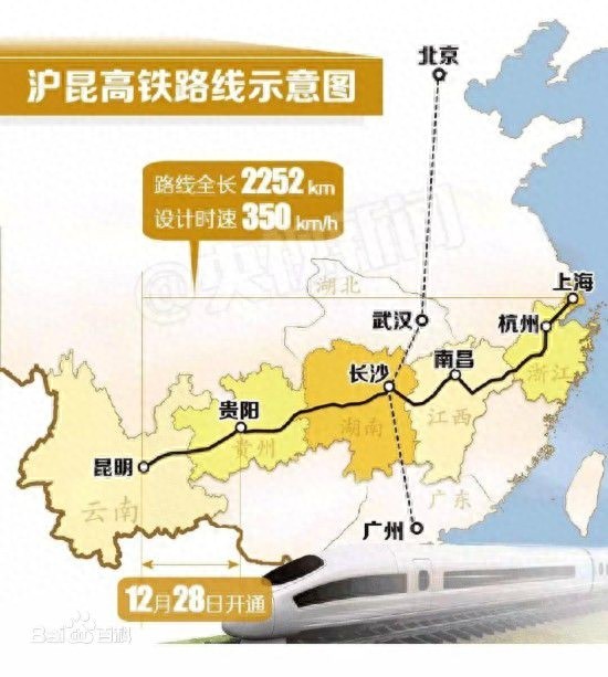 途经区域:上海、杭州、南昌、长沙、贵阳、昆明6座省会城市及直辖市
