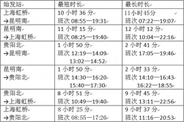 上海虹桥→贵阳北加开G4921次,上海虹桥23:20开,贵阳北第二日6:51到,全程运行7小时31分。