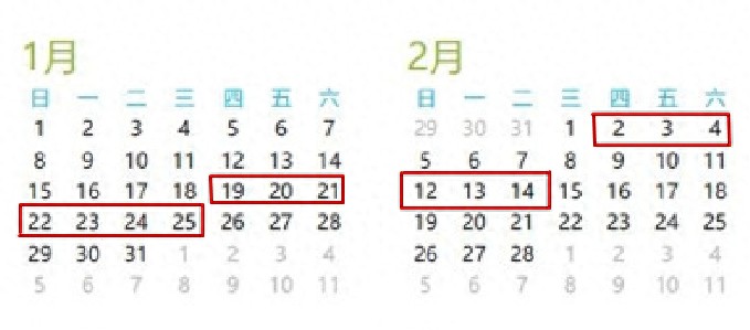 1月19日至25日,2月2日至4日,2月12日至14日增开情况