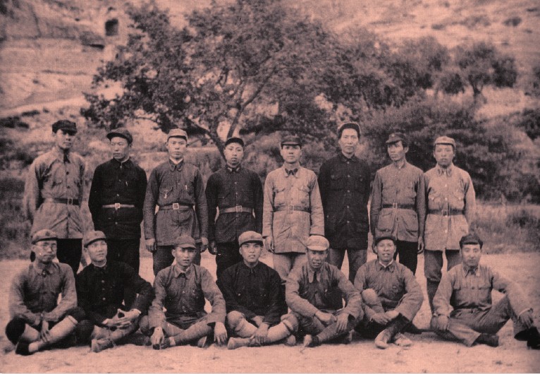 图 | 1936年参加井冈山斗争的部分人在陕北合影,前排左一罗荣桓,右一林彪,后排左六毛泽东,左一赵尔陆