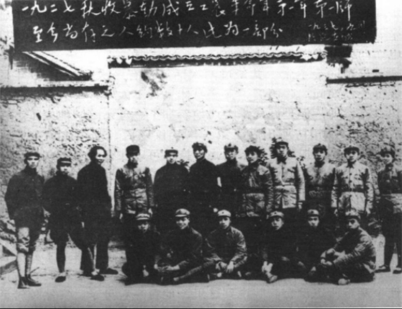 图|秋收起义十年后,毛主席(后排左三)和参加起义的部分人员在陕北合影,后排右六为罗荣桓,右一为贺子珍