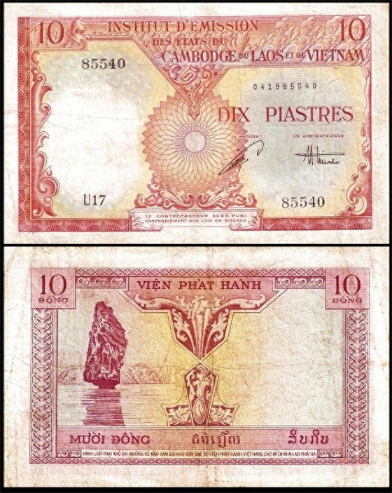 1953年,东方汇理银行在东南亚地区开始发行新的纸币,而且这个时候,世界格局已变,各个国家独立意识提高,因此新发行的纸币引入了当地的本国面值体系,一种双面值纸币在东南亚诞生了,并且冠以了“印支联邦”的名义。