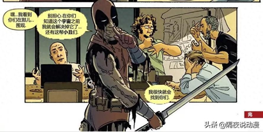 例如著名的漫威反英雄死侍,他就是一个有着“第四面墙意识”的话痨,尤其是那部《死侍屠杀漫威宇宙》漫画,自从他意识到自己是个漫画角色之后,便一路上大杀特杀,最终在结尾处杀到了漫威总部。