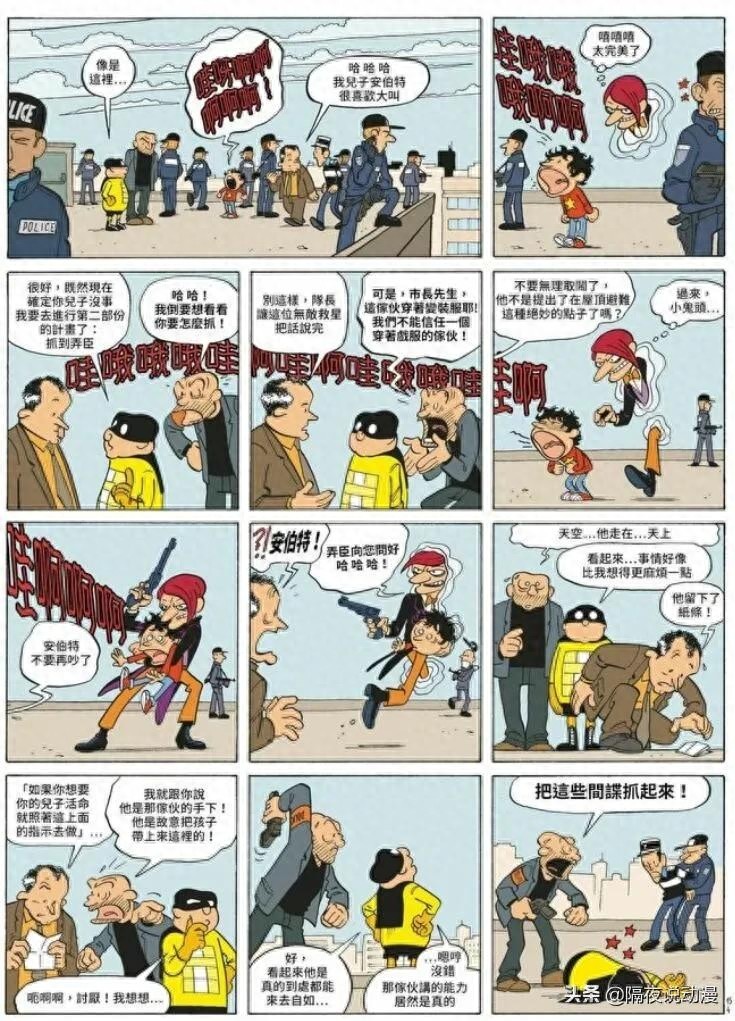 除了刚才提到的可以利用对话气泡攻击对手的文字大师,还有一位擅长搞发明的反派博士,他在其中一集漫画里发明了一台时空机器人,一发离子炮就能直接炸出时空虫洞。