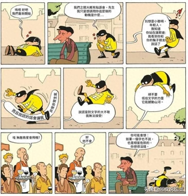 如果说无敌救星的设定是利用分镜页面穿越时空,那么文字大师就是用人物对话气泡来起到攻击和妨碍的效果。