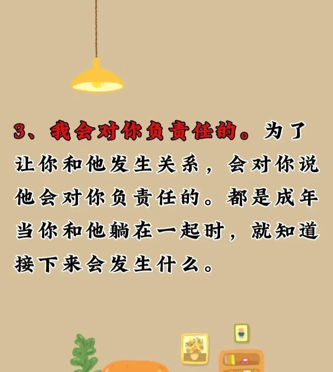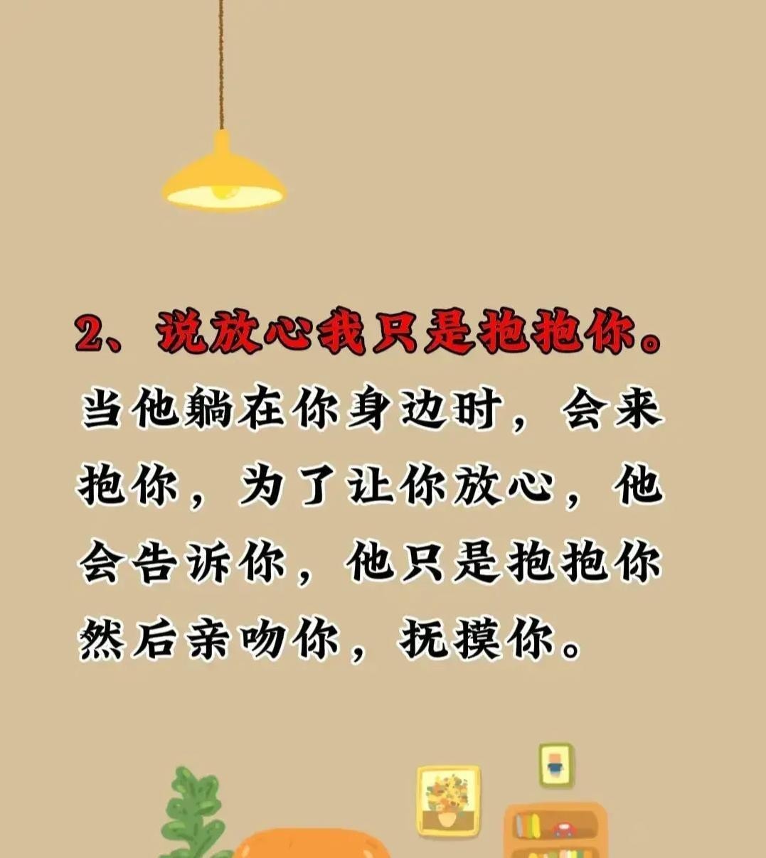 第二句话是:“我会一直陪伴你。”这句话传递出男人对女人的承诺和坚定的信心。男人告诉女人无论发生什么,他都会一直陪在她身边,给予她力量和支持。这种安全感和依靠让女人感到被珍视,同时也让她们更加愿意在困境中寻求男人的援助和建议。