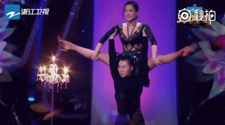 黄圣依在舞伴的托举下完成“空中一字马”。