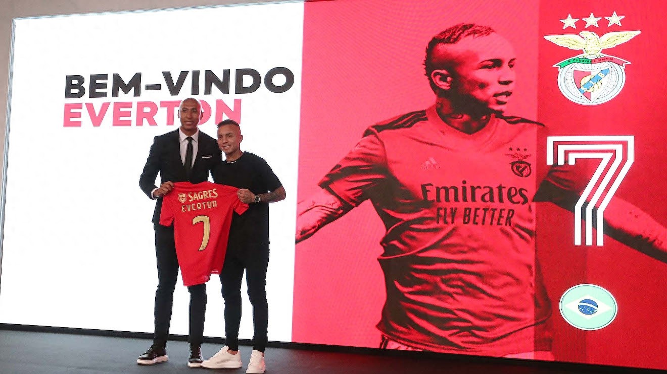 然而这么优秀的一位桑巴军团边锋为何等到了24岁才得已登陆欧洲足坛呢?主要有以下原因。首先,埃弗顿的归属权过于复杂,19年美洲杯过后,他已经开始闻名欧洲,包括阿森纳、AC米兰在内的多家豪门都对他非常感兴趣,埃弗顿甚至自荐希望加盟曼联,但是无奈其所有权过于复杂,而格雷米奥当时索要7000万欧的转会费也相当高昂,令这些豪门球队望而生畏。在今年夏季转会窗,埃弗顿能够以2000万欧的实惠价格加盟本菲卡,着实是得益于本菲卡在巴西超强的人脉关系网,他才得以圆梦!