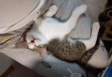 再到后边儿就是又有皮肤病治病的时候又帮他洗药浴帮他喷药。再到后边儿看着它的病,慢慢的好转。心里有一种说不出来的开心!