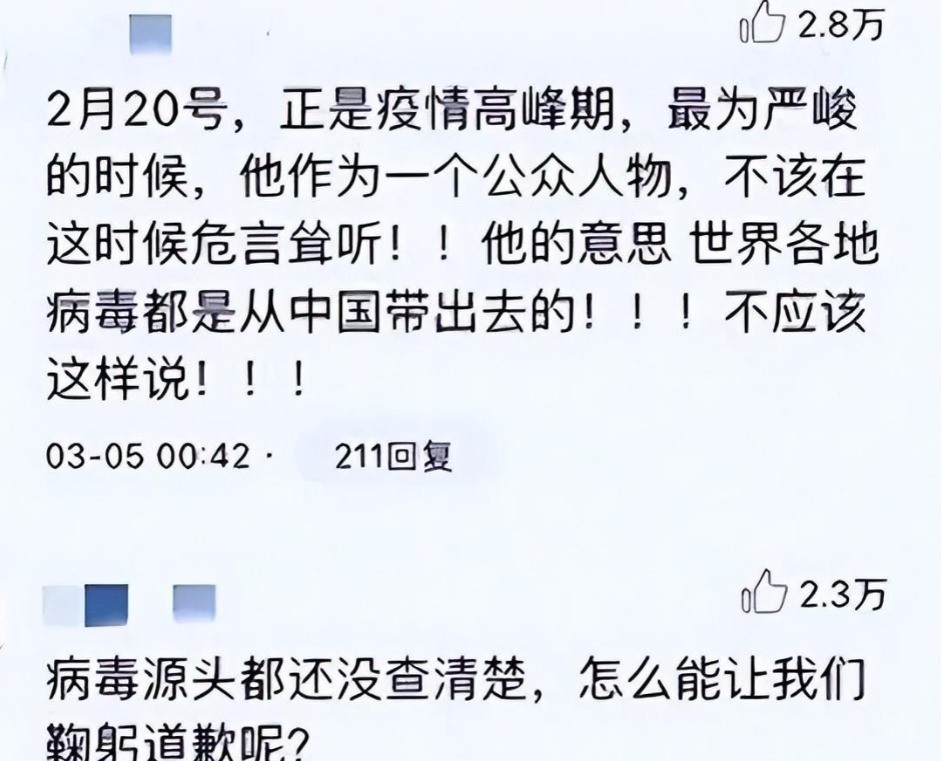 2020 年,新冠疫情肆虐全球,我国在被全世界推锅他们都觉得是我们将疫情传出去的,而在疫情防控形势最为紧迫之际,他竟然在网上发布了一则令人瞠目结舌的帖子。