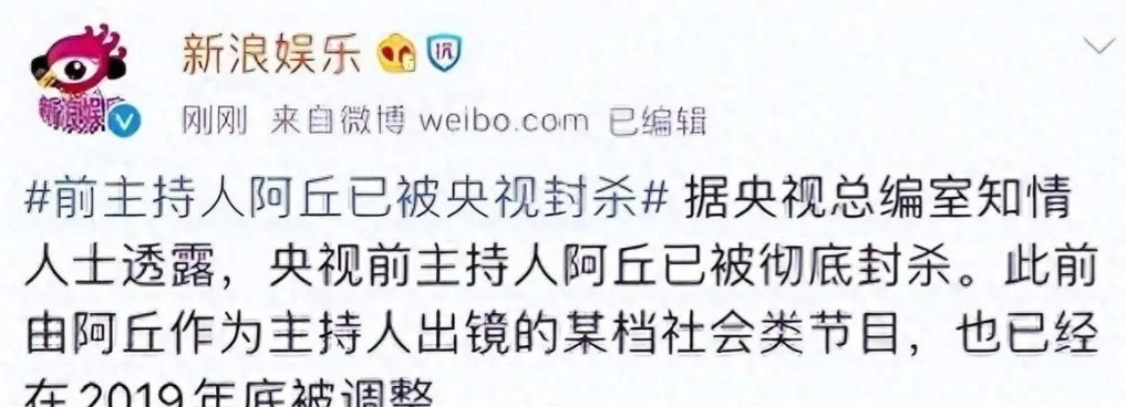 新浪微博:前主持人阿丘已被央视封杀