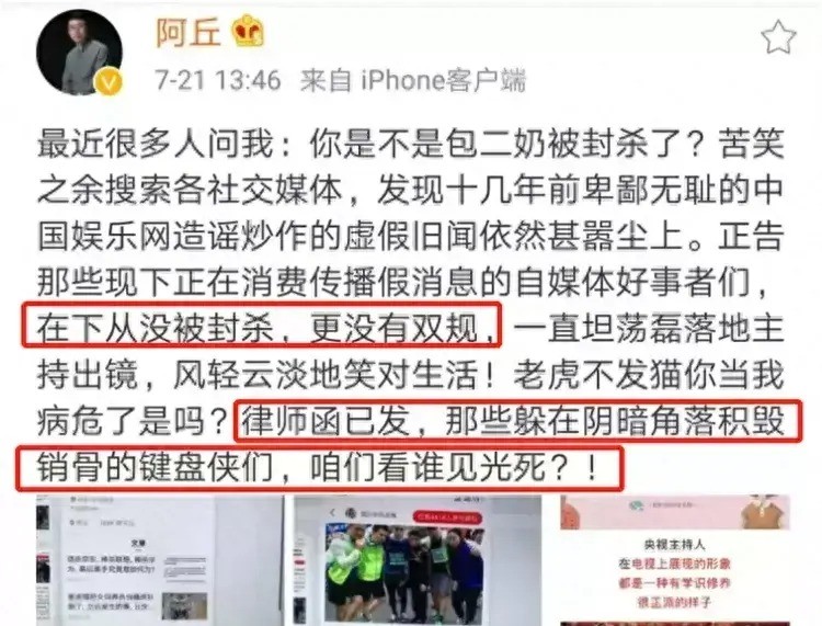 阿丘作为公众人物,特别是曾经的央视主持人,他的话很有分量,能影响很多人。他的话不仅让一些人产生误解,还被别有用心的人用来攻击中国。