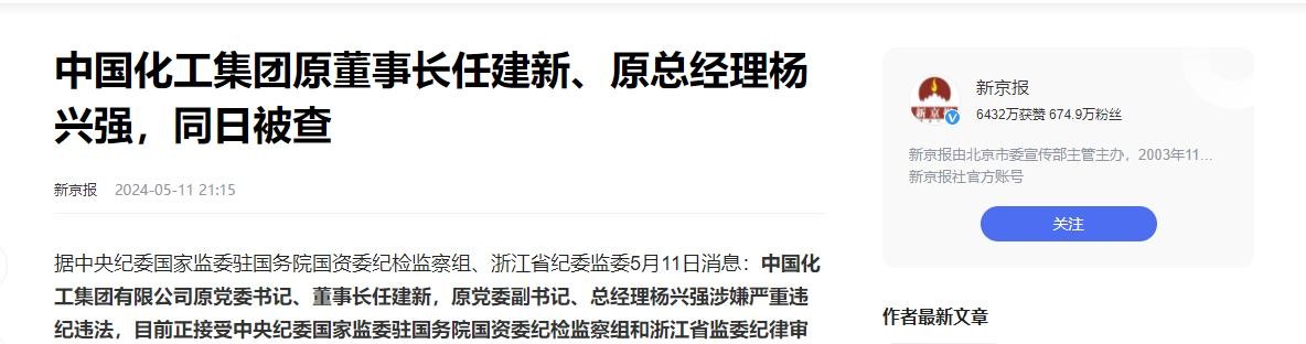更令人意外的是,退休六年后,任建新被带走调查,虽然官方尚未公布具体案情,但外界普遍猜测,这与他在中国化工任职期间的并购决策有关。
