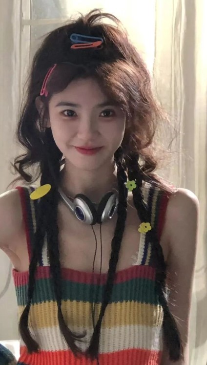 上面扎个高马尾,下面两边各绑两个麻花辫,尽可能让头发蓬松点,选几个亮眼的彩色发夹,随意夹在头发上,让我看看还有谁学不会这个Y2K甜辣发型?