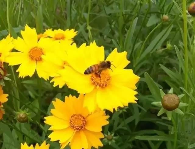 金鸡菊是一种原产于美国境内的特有植物,同时也是我国最早的外来植物品种之一。金鸡菊的生命力很强,能常能在野外看到成片的金鸡菊。金鸡菊花期有四个多月,花朵纤小密集,秀丽灵动,花开时点点黄色花瓣像是繁星闪耀,别具风采。