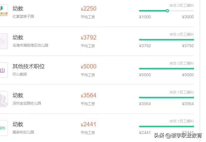 下图是小编老师在某平台整理的最新的保育员工资待遇,其中高低不等,和单位性质与所处的地区有很大关系。这个相信你懂的。