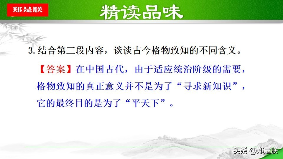 3.结合第三段内容,谈谈古今格物致知的不同含义。