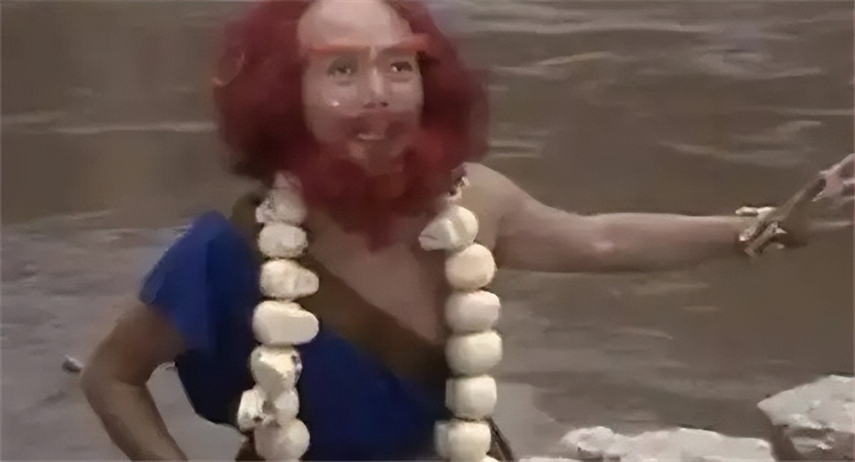 在小说第二十八回,作者描写流沙河中妖怪的形象是“红焰发,蓝靛脸”,脖颈上还悬挂着九个骷髅头,面目狰狞无比,口似血盆,眼光闪灼,令人望而生畏。