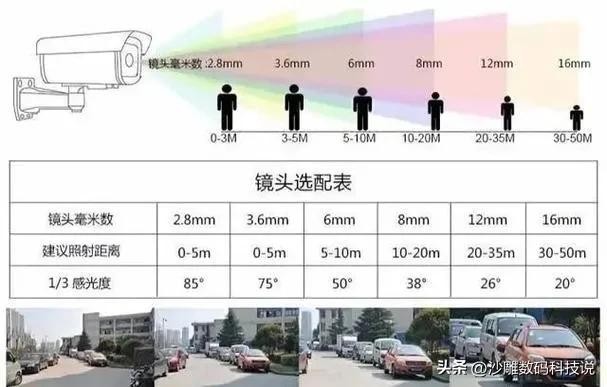 一般家用的监控摄像头有2.8mm.3.6mm.4mm、6mm、8mm、12mm、16mm可以选;焦距大小决定着可视距离和可视的角度,焦距越小,可视角度越近,可视角度越大,反则亦然;简单的来说普通的家庭我们就选择3.6mm或4mm的监控是最理想的。