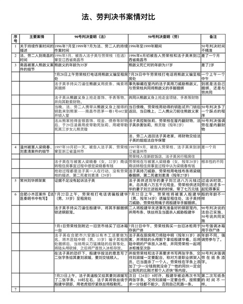 劳生桥提供的法子英、劳荣枝判决书案情对比。