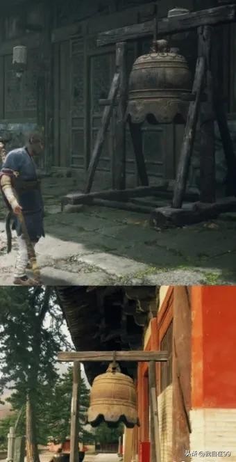 还有在东大殿的廊前,有一座铜钟,和游戏里几乎一模一样,这钟是明代的,就是游戏里的原型。