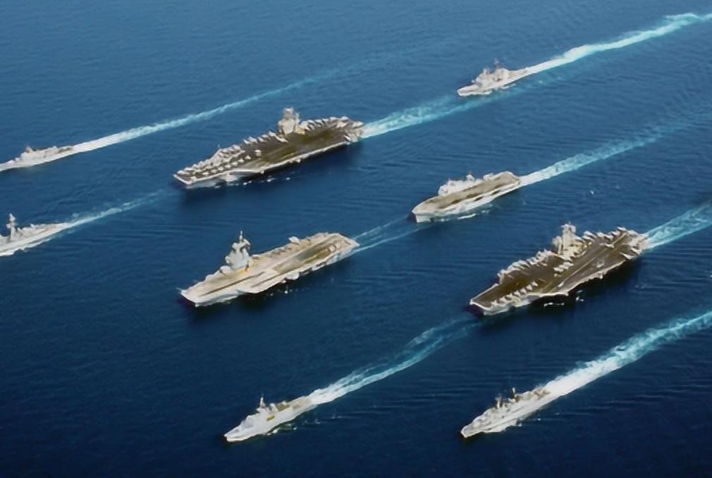通常一个航母战斗群由护卫舰、巡洋舰、潜艇和舰载机组成,外层警戒范围达数百公里以上。