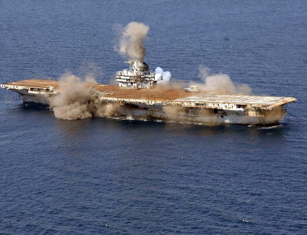 2005年美军对退役航母“美国”号进行击沉实验,模拟各种炸弹、鱼雷和导弹攻击,前后持续了25天这艘航母才被“打沉”。