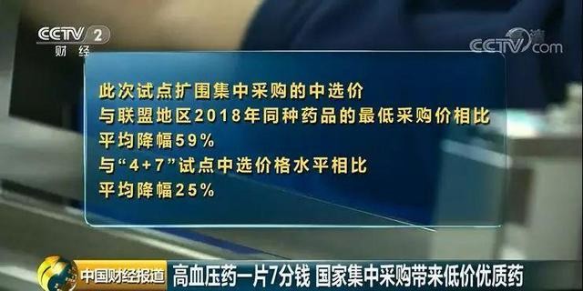 比如说,此次试点扩围集中采购的中选价,与联盟地区2018年同种药品的最低采购价相比,平均降幅59%。与“4+7”试点中选价格水平相比,平均降幅25%。