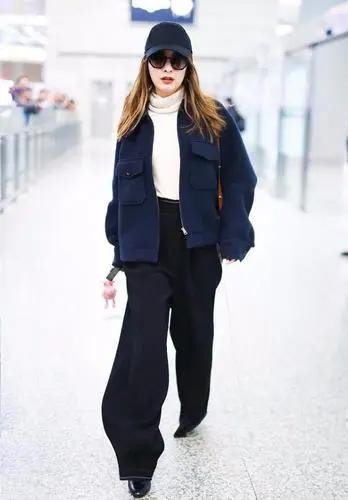 吴昕的这套造型偏向于欧美风,虽然说浅棕色的发型在阳光的照射下有点毛躁,不过这种颜色跟冷白皮是的适配度达到了百分百,它可以将五官衬托得更加高级。藏青色的工装外套很有型,减少了吴昕的女人味,提升了随意洒脱性。黑色阔腿裤的搭配是锦上添花,既提升了时尚度,也包容了身材上的缺陷,更重要的是,穿高跟鞋增高不会露馅。
