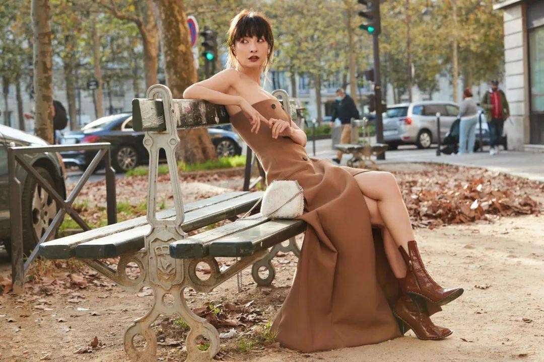 41岁吴昕带火了一种新穿法:法式刘海+抹胸裙,慵懒高级又减龄