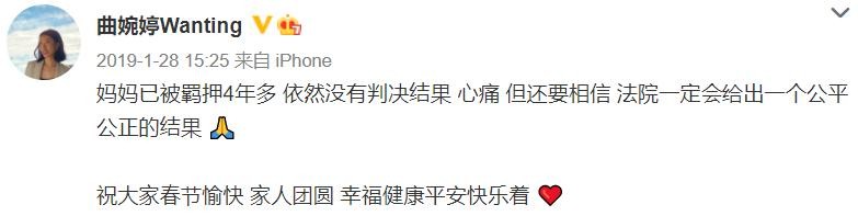 曲婉婷曾因母亲多次登上热搜,只因她曾多次为在牢狱中的母亲云端“申冤”。