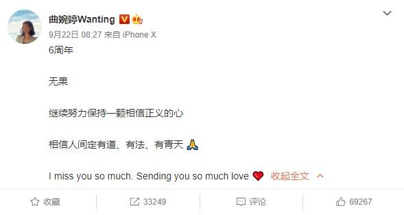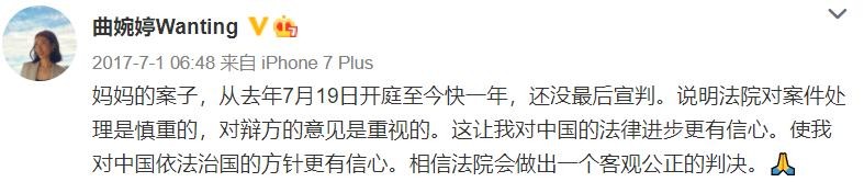 ● 曲婉婷微博截图