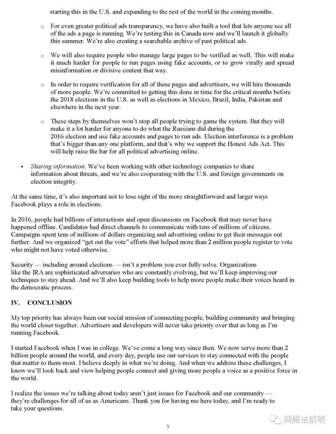 扎克伯格:在阻止网络信息被滥用等方面做得不够(附证词全文)