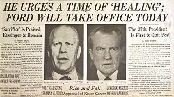 等到福特因为尼克松辞职,自动转为总统之后,他成了美国历史上唯一一个“没有参加大选却当上总统的人”。