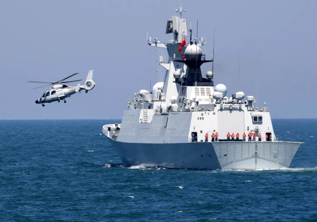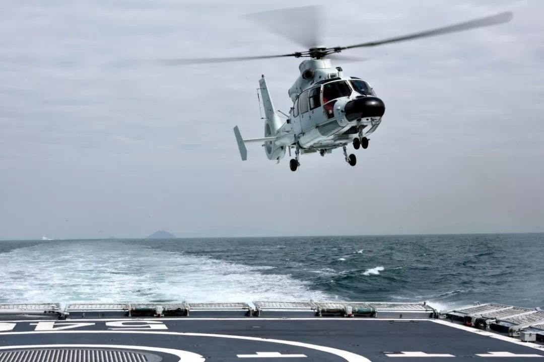 4月26日,参加联演的直升机从中国海军日照舰上起飞。