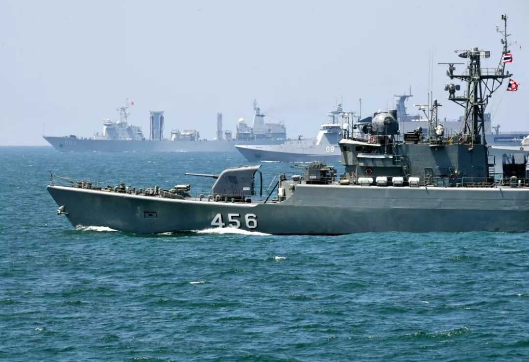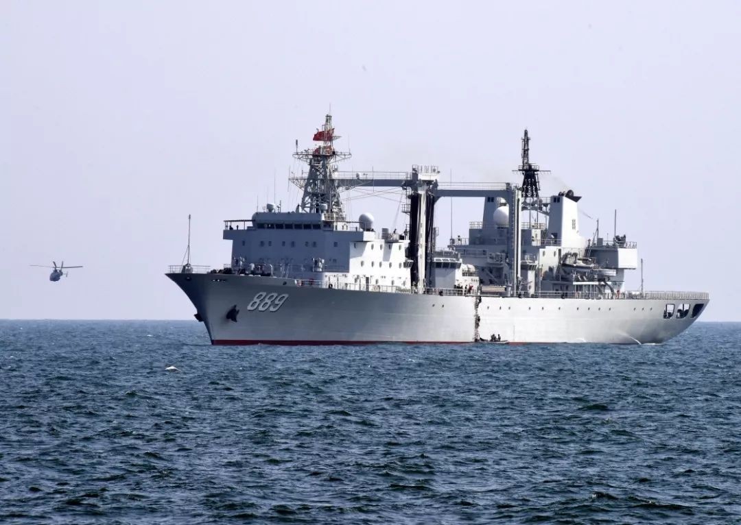 4月26日,参加联演的中国海军综合补给舰太湖舰在演习中。