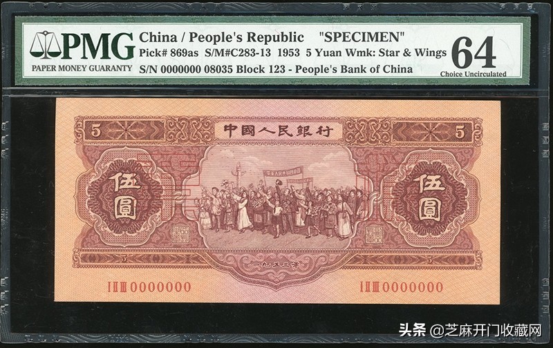 中国人民银行第二版人民币5元样票,许义宗教授藏品,PMG鑑定,评64 ,成交价格: HKD 36000