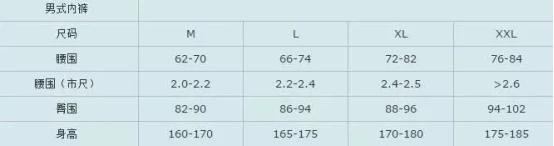 10、男式内裤尺码表