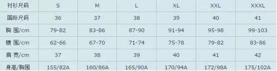 7、男衬衫尺码对照表