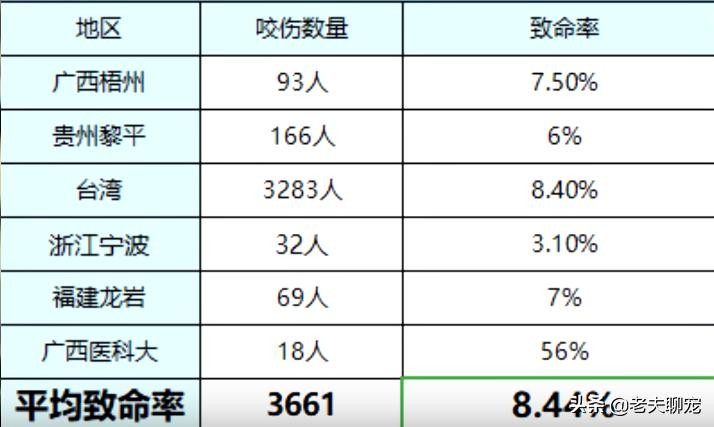 而且它的早期致死率仅为8.44%,在国内十大毒蛇中仅高于短尾蝮和竹叶青,位列倒三的位置。