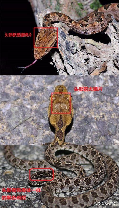 其实很简单,首先它们在头部上的鳞片的区别就不小。