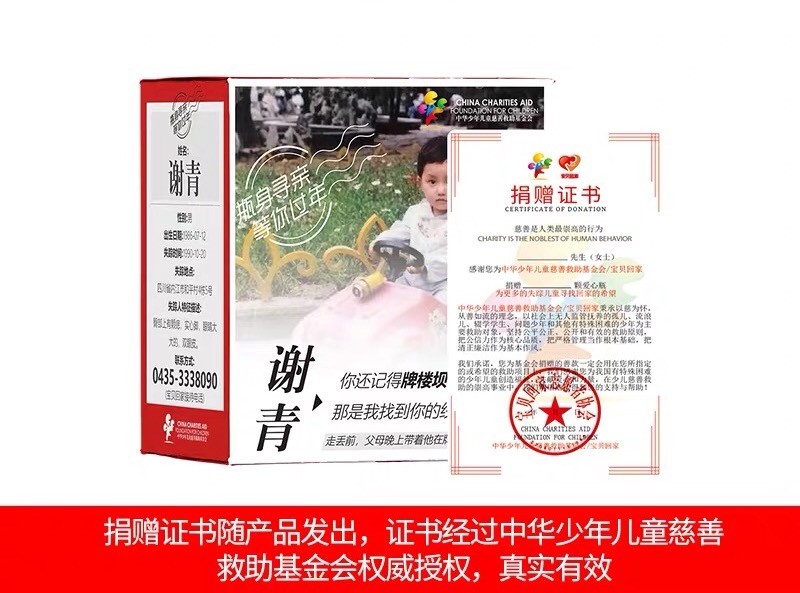 肖独峰:包装上有失踪儿童的照片、姓名、出生年月、失踪的时间地点等,还公布了“宝贝回家”的电话。其实我们除了11万瓶在线上销售外,还在线下挑选了20万家销售终端(商超、零售、餐饮等),张贴寻亲海报。