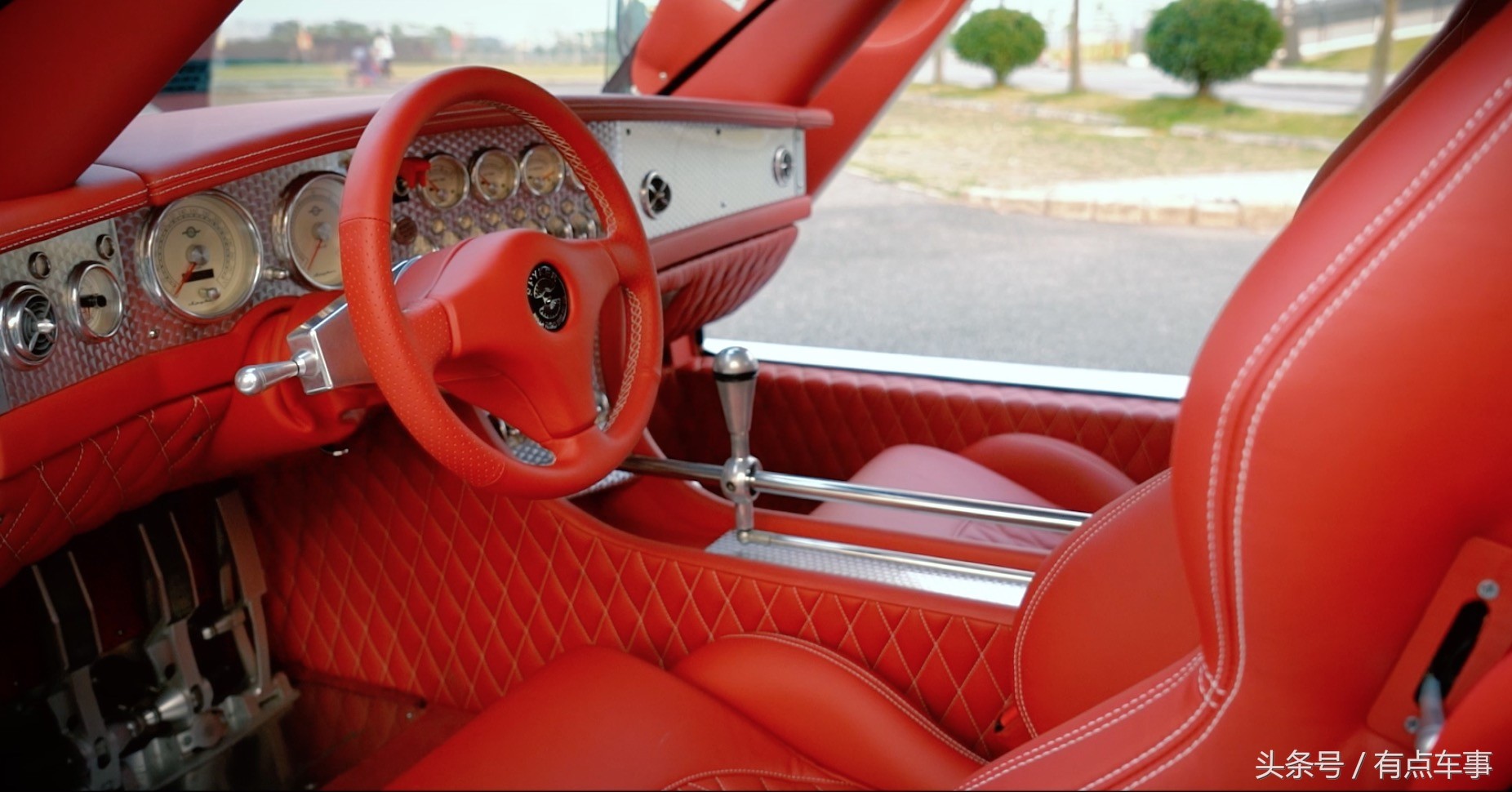 作为一台手动挡的车,整台车最让人惊艳的细节莫过于挡把,没有任何过多的装饰,但是你可以在换挡的时候看到后面连接部分的动作,这种感觉就像你把手伸到一个人心脏里,靠手捏来控制他的心跳,直接、狂野。
