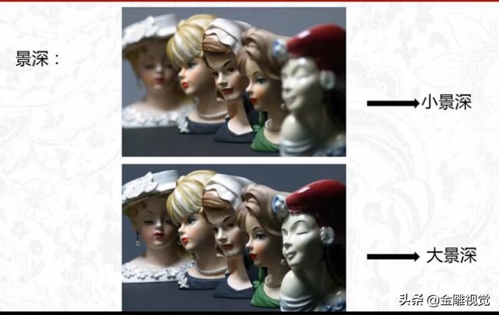 影响景深的三要素:光圈、距离、焦距。1、光圈:小光圈大景深,大光圈小景深。2、距离:这里的距离是指被摄物与相机的距离,离对焦物体近,景深小,相反远则景深大。3、焦距:越广角景深大,越长焦景深小。