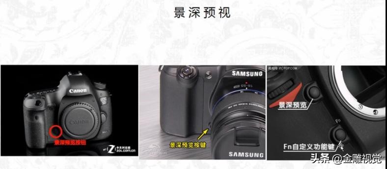 我们还可以通过相机机自的景深预览按扭来判断景深,但最大光圈不能显示。